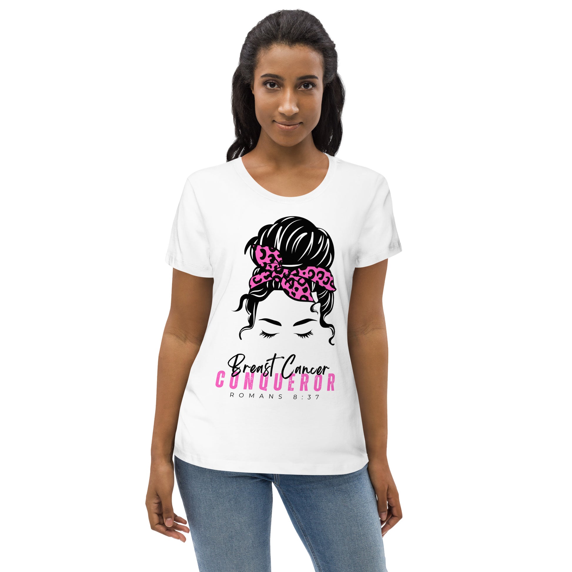 Breast Cancer Conqueror-White Tee-Women's fitted